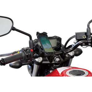 Met deze GSM-houder bevestigt u uw smartphone gemakkelijk op het stuur. De stuurhouder is binnen enkele seconden te bevestigen en klaar voor gebruik. U kunt dan volledig gebruik maken van uw smartphone, die met siliconerubber tijdens het rijden extra wordt beschermd.