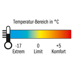 Minimumtemperatuur waarbij een volledig in de slaapzak ingepakte slaper (vrouw met een normaal postuur, 60 kg) in een ontspannen lichaamshouding het net nog niet koud heeft.