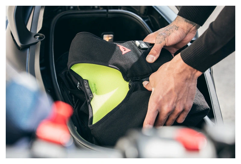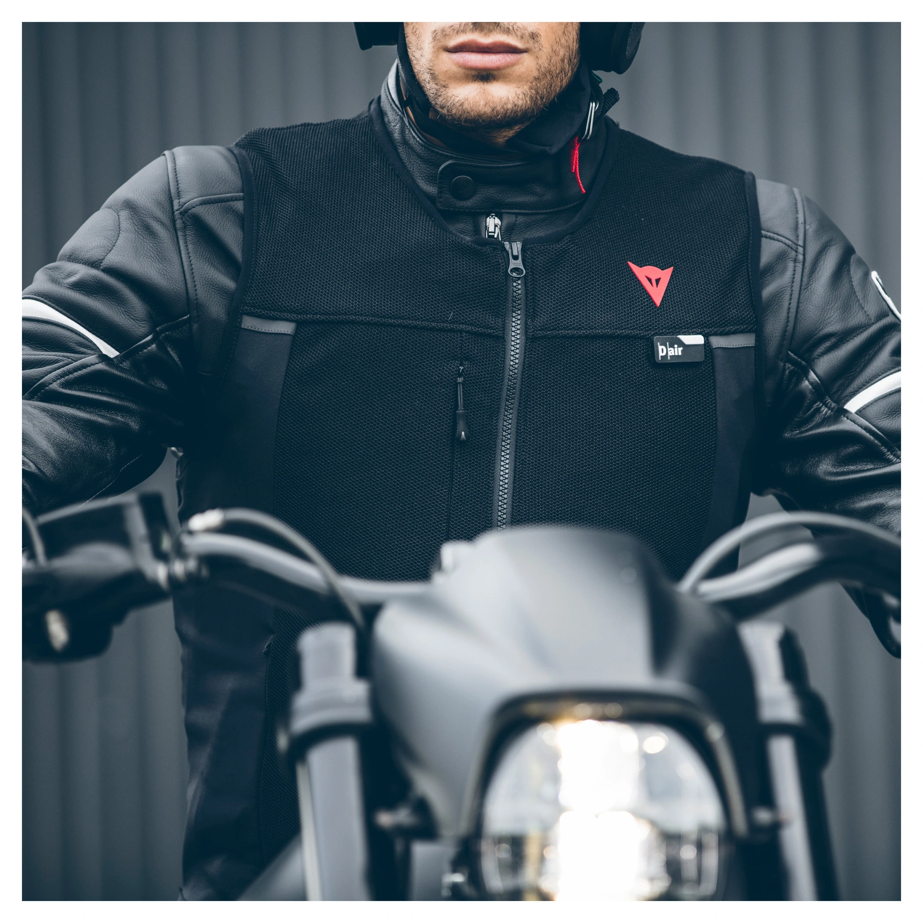 Het Smart Jacket kan over of onder elke jas of outfit gedragen worden, heeft geen verbinding met de motor nodig, is geventileerd en gemakkelijk opvouwbaar. Het combineert dus alle voordelen van de nieuwste generatie Dainese D-air in een eenvoudig kledingstuk dat overal gedragen kan worden.