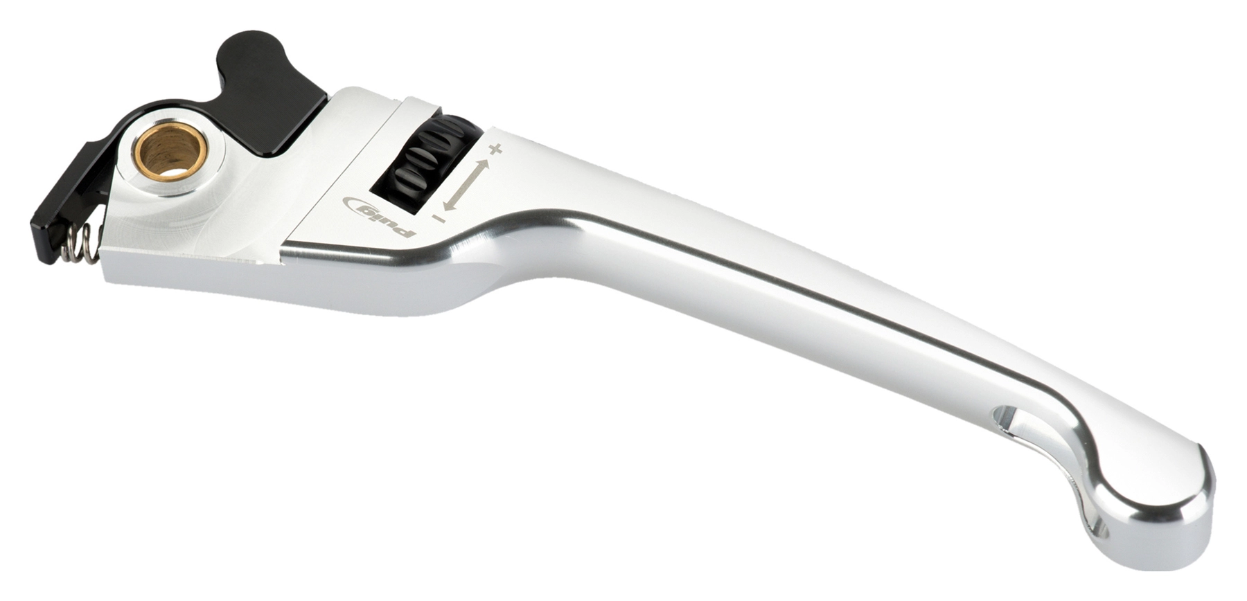 De Puig rem-/koppelingshendel is gefreesd uit een aluminium blok, geslepen en vervolgens geanodiseerd.
